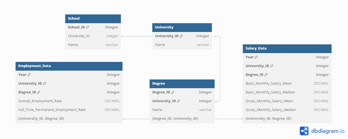 - Modeled entities such as Universities, Courses, Graduates, and Employment Outcomes.