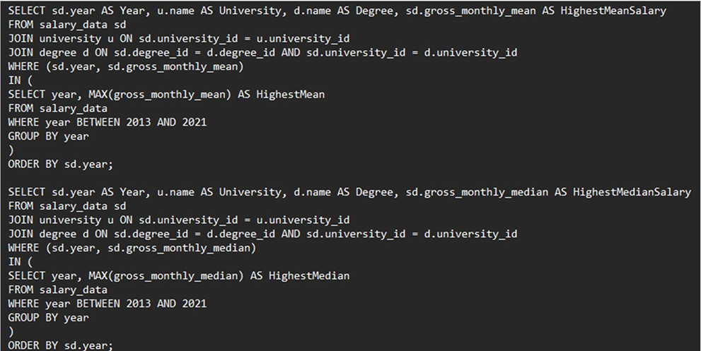 - Answer formulated questions dynamically (e.g., “Which courses offer the highest mean salaries?”).
